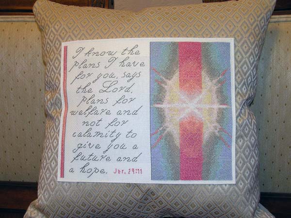If you like this Bible verse, view Hope in the Quick Stitch Gallery or I Will Give You Hope and Plans To Give You Hope in the 8 x 10" Gallery and Plans of Hope, Hope, Hope and a Future or Plans and I Know The Plans and Future and a Hope and An Expected End all in the Custom For You Gallery. Return to 8 x 10" Gallery or the Home Page