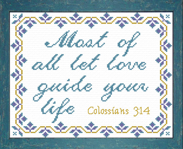 Large, 5 Page Color Chart - 3 Floss Colors, DMC or AnchorSkill Level Beginner to Intermediate Most of All was designed per a customer request. Usually these designs become part of the " Custom for You" Gallery, but due to it's special lettering I decided to add this design to the 8 x 10" Gallery collection. Sandra |
