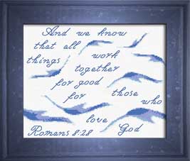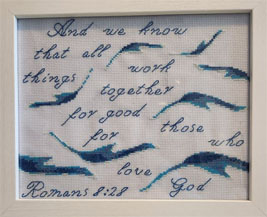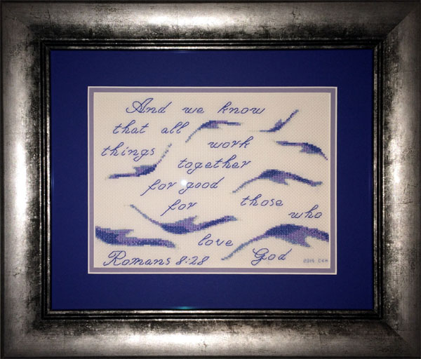 Large, 5 Page Color Chart - 4 Floss Colors, DMC or Anchor Skill Level BeginnerPhoto sent in by Carolyn Krysl Hutchinson who has stitched 26 designs for her church so far. This design was framed at the Hobby Lobby in Missouri Texas by Teresa. |