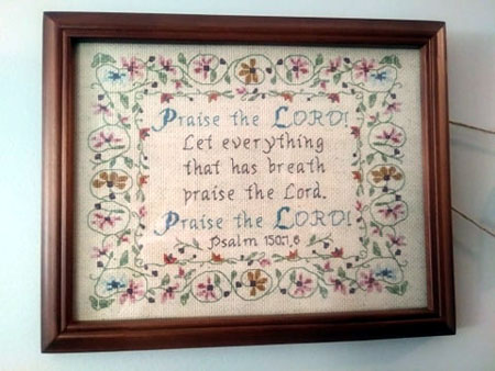 ![]() Cross Stitch Psalm 150:1,6 The design finishes to a standard frame size of 8 x 10" based on 14 count Aida or 28 count Even Weave or Linen (over 2) 20.3 x 25.4cm - 140 x 112 stitches. No Custom Framing Needed! Charted in 9 colors, either DMC or Anchor, this fanciful floral design looks wonderful stitched on white or vintage colored fabrics, especially linens. Skill Level Intermediate ![]() |