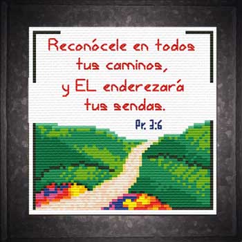 Caminos Senderos Los Proverbios 3:6 Version de Biblia - Parafraseado 5 x 5 pulgadas o 12.7 x 12.7 centímetros (puntadas de 70 x 70) |