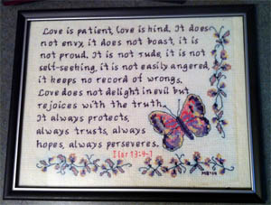 My husband and I are long term missionaries serving in Villa Nueva, Guatemala. I started buying these kits to make as gifts for some of our supporters. I truly enjoy being able to select bible verses that make me think of each individual supporter or a bible verse I would like to pray over their lives. As I stitch these designs I pray for them and their families. I plan on explaining to each of them why I chose the specific verse for them and what the prayers were that I prayed for them while working on the design. I enjoy these designs because they are beautiful but easy which allows me to get a lot done in the small amounts of free time I have. I have now also bought some charts in Spanish to make as gifts for some of the families we serve here. Thank you for this website and for helping me to share the gift of God's word to others.