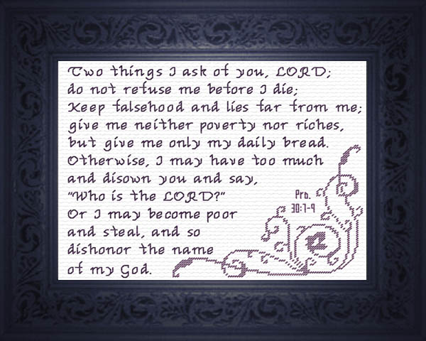 Finished size 8 x 10" (20.3 x 25.4cm) if stitched on 14 count Aida or 28 count Evenweave or Linen -112 x 140 stitches