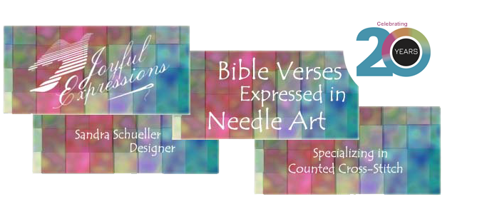 Welcome to Joyful Expressions where cross-stitch designs feature favorite Bible verses. Enjoy creating a beautiful project that will be an inspiration and blessing for years to come.