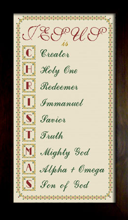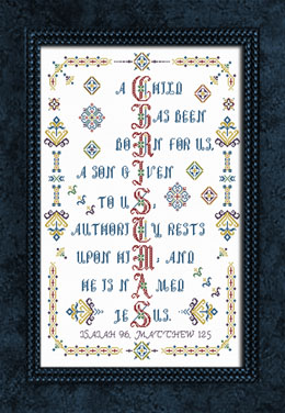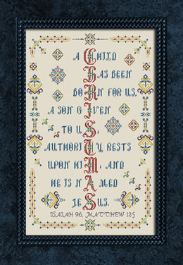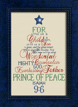 Cross Stitch this CHRISTMAS Acrostic based on Isaiah 9:6 and Matthew 1:25 Finished size 16 x 23 inches based on 14 Count aida or 28 count linen or evenweave (over two strands) 223 x 322 stitches - 40.5 x 58.5cm.Skill Level Beginner to Intermediate Fun to stitch motifs - no fractional stitches or french knots.