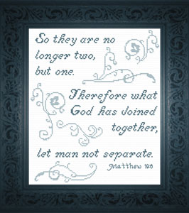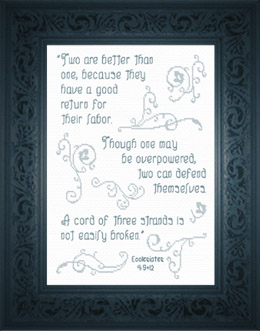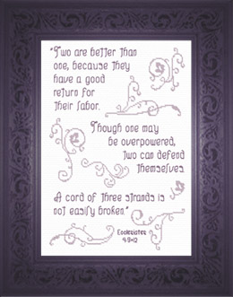 This Bible verse is perfect for a wedding or anniversary gift and may be stitched in any two colors so that one can easily match a couples wedding color choices!
