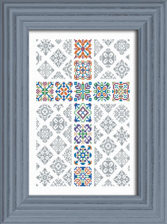 Stitch in any three complimentary colors. This design is charted in 3 color ways - Peacock Blue, Antique Violet and Beaver Gray in both DMC or Anchor.