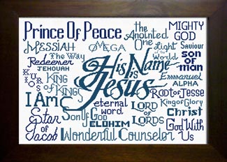 This design was adapted to twice the size of the original "His Name is Jesus" as customers wrote us wanting to stitch this design as a gift to their church. The original "His Name is Jesus" design is 15 x 11 3/8 . 200 x 140 stitches, whereas this version is double that size at 30 x 21-3/8 . 420 X 300 stitches. Design size is based on 14 count Aida or 28 count Linen or Evenweave over two strands.