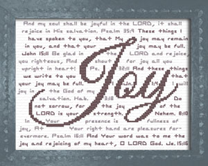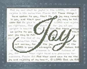 I really love how striking this design is with the large calligraphy "Joy" as the focal point surrounded by so many verses. I think that you will enjoy stitching this as well!