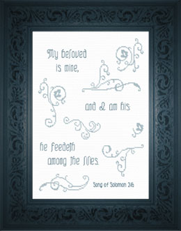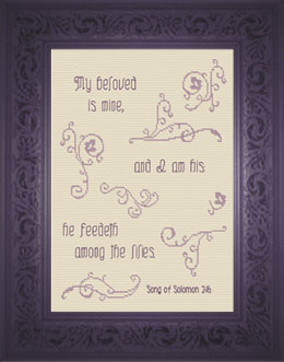 My Beloved is Mine - Song of Solomon 2:16 This design may be stitched in any two complimentary colors so you can easily match a couples wedding color choices! This design is already charted for Antique Blue or Violet shades. What is also great is because this design finishes to 11 x 14 inches, you can purchase an off the shelf frame - No Custom Framing necessary!