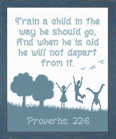 Based on the design Children are a Heritage and A Teacher's Prayer, Train A Child may be the perfect gift to stitch for both parents and teachers.