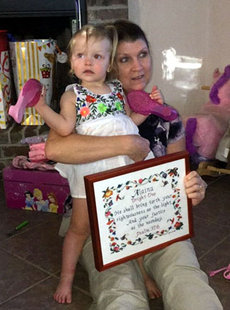 Veronica Wright finished these Name Blessings as pillows for her precious granddaughters.