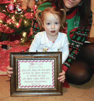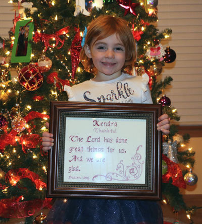 Christmas with Name Blessings gifts stitched by Gloria Follis