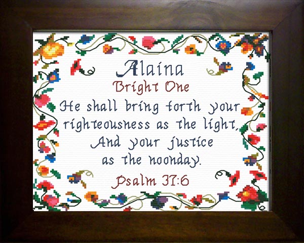 Order Alaina as a Complete Kit for $17.00 with 14 ct Aida or $22.00 with 28 ct Linen