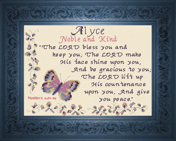 Order Alyce as a Complete Kit for $17.00 with 14 ct Aida or $22.00 with 28 ct Linen