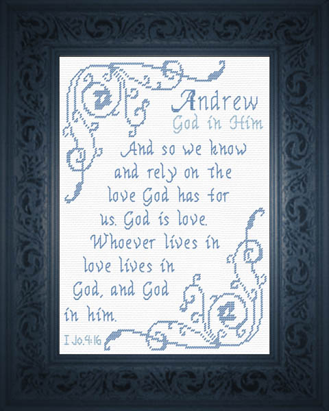 Purchase this Chart for $8.00 or Order Andrew 5 as a Complete Kit for $17.00 with 14 ct Aida or $22.00 with 28 ct Linen
