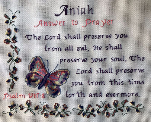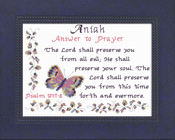 or Order Aniah as a Complete Kit for $17.00 with 14 ct Aida or $22.00 with 28 ct Linen