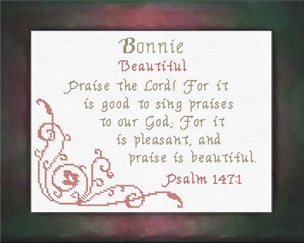 Purchase this Chart for $8.00 Order Bonnie as a Complete Kit for $17.00 with 14 ct Aida or $22.00 with 28 ct Linen