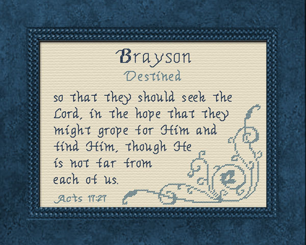 Purchase this Chart for $8.00 or Order Brayson as a Complete Kit for $17.00 with 14 ct Aida or $22.00 with 28 ct Linen