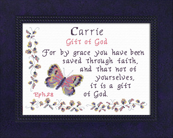 Purchase this Chart for $8.00 or Order Carrie as a Complete Kit for $17.00 with 14 ct Aida or $22.00 with 28 ct Linen