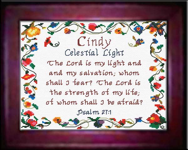 Order Cindy as a Complete Kit for $17.00 with 14 ct Aida or $22.00 with 28 ct Linen