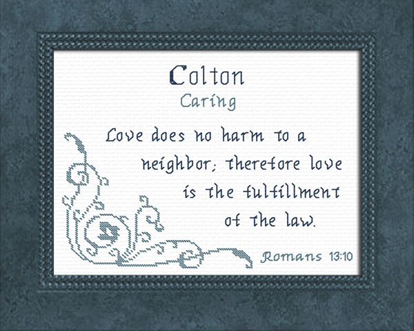 Purchase this Chart for $8.00 or Order Colton as a Complete Kit for $17.00 with 14 ct Aida or $22.00 with 28 ct Linen