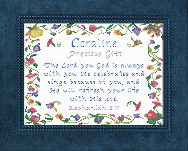 Purchase this Chart for $8.00 or Order Coraline as a Complete Kit for $17.00 with 14 ct Aida or $22.00 with 28 ct Linen