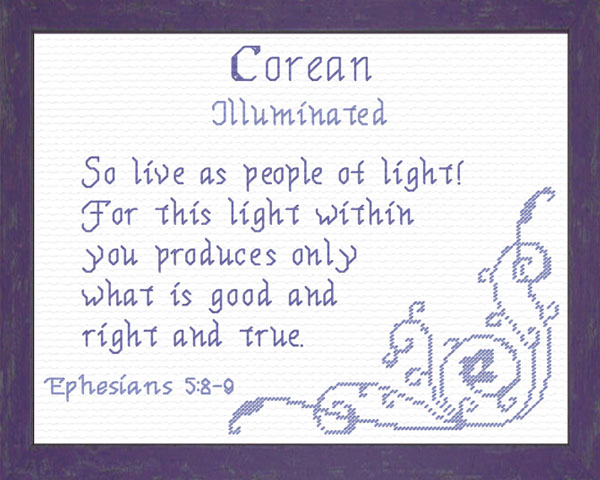 Purchase this Chart for $8.00 or Order Corean as a Complete Kit for $17.00 with 14 ct Aida or $22.00 with 28 ct Linen
