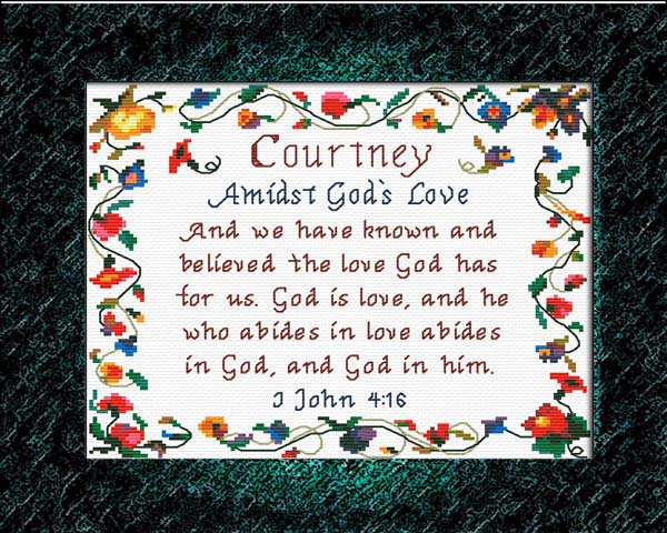 Order Courtney as a Complete Kit for $17.00 with 14 ct Aida or $22.00 with 28 ct Linen