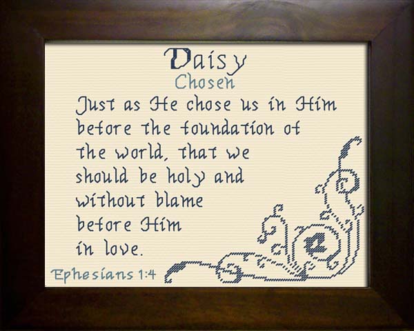 Purchase this Chart for $8.00 Order Daisy as a Complete Kit for $17.00 with 14 ct Aida or $22.00 with 28 ct Linen