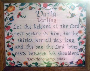 Order Darla as a Complete Kit for $17.00 with 14 ct Aida or $22.00 with 28 ct Linen