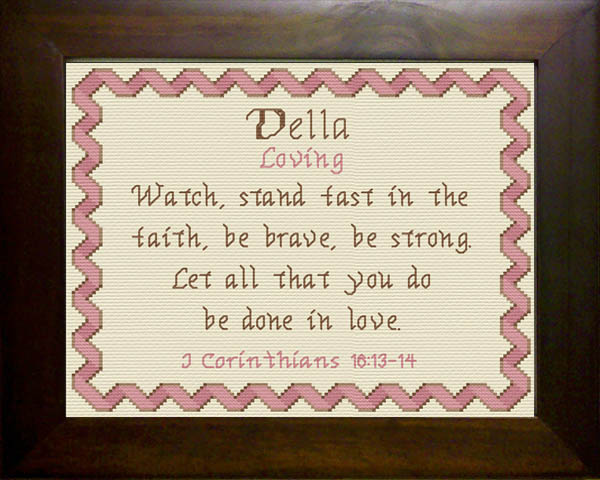 Order Della as a Complete Kit for $17.00 with 14 ct Aida or $22.00 with 28 ct Linen