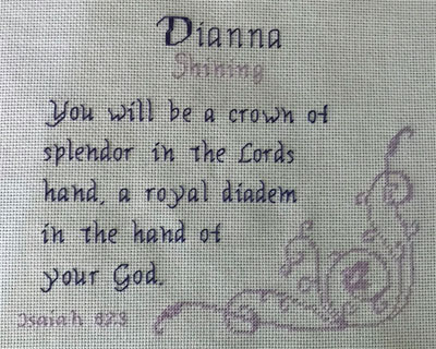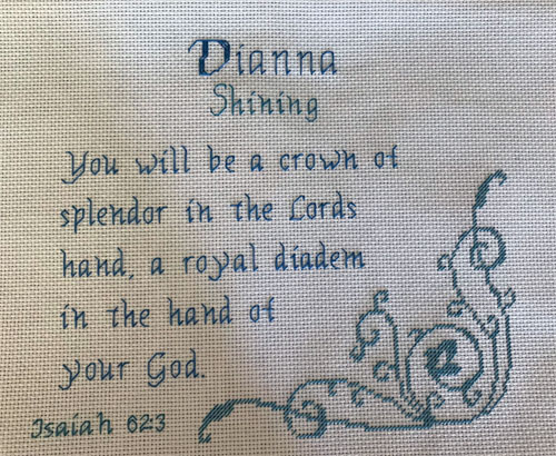 Purchase this Chart for $8.00 or Order Dianna as a Complete Kit for $17.00 with 14 ct Aida or $22.00 with 28 ct Linen