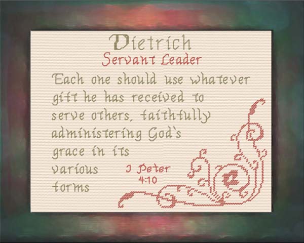 Purchase this Chart for $8.00 Order Dietrich as a Complete Kit for $17.00 with 14 ct Aida or $22.00 with 28 ct Linen