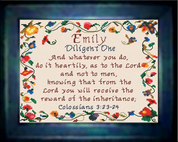 Order Emily as a Complete Kit for $17.00 with 14 ct Aida or $22.00 with 28 ct Linen