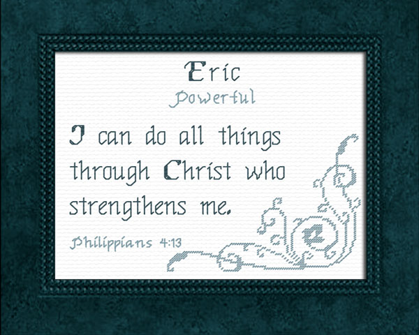 Purchase this Chart for $8.00 or Order Eric as a Complete Kit for $17.00 with 14 ct Aida or $22.00 with 28 ct Linen