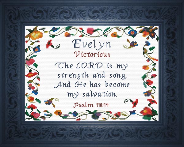 Order Evelyn as a Complete Kit for $17.00 with 14 ct Aida or $22.00 with 28 ct Linen