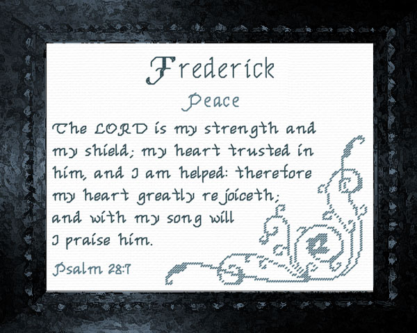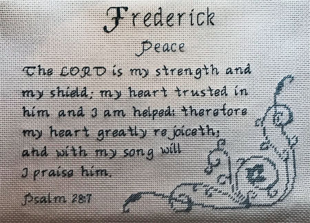 Purchase this Chart for $8.00 or Order Frederick as a Complete Kit for $17.00 with 14 ct Aida or $22.00 with 28 ct Linen