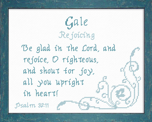 Purchase this Chart for $8.00 or Order Gale as a Complete Kit for $17.00 with 14 ct Aida or $22.00 with 28 ct Linen