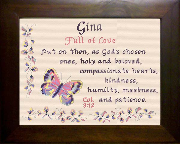 Order Gina as a Complete Kit for $17.00 with 14 ct Aida or $22.00 with 28 ct Linen