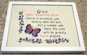 Order Grace as a Complete Kit for $17.00 with 14 ct Aida or $22.00 with 28 ct Linen