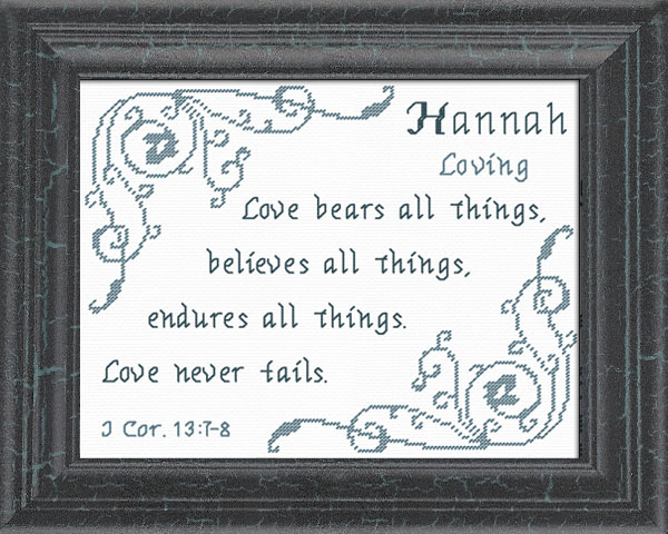 Purchase this Chart for $8.00 Order Hannah 6 as a Complete Kit for $17.00 with 14 ct Aida or $22.00 with 28 ct Linen