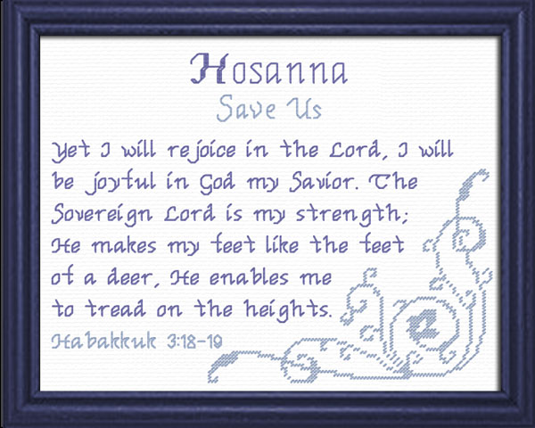 Purchase this Chart for $8.00 or Order Hosanna as a Complete Kit for $17.00 with 14 ct Aida or $22.00 with 28 ct Linen