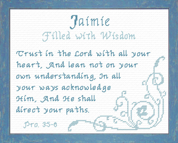 Purchase this Chart for $8.00 or Order Jaimie as a Complete Kit for $17.00 with 14 ct Aida or $22.00 with 28 ct Linen