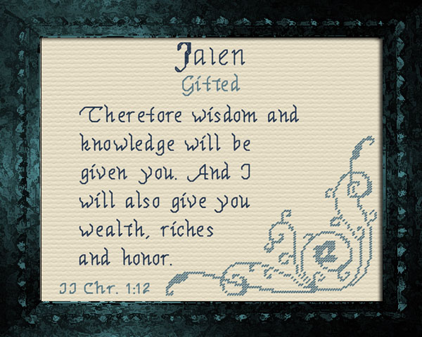 Purchase this Chart for $8.00 or Order Jalen as a Complete Kit for $17.00 with 14 ct Aida or $22.00 with 28 ct Linen