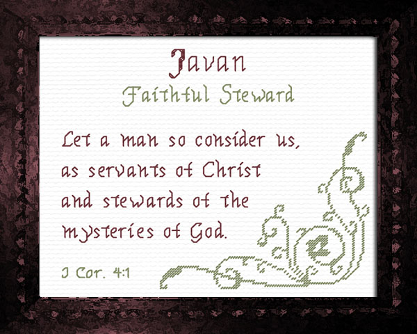 Purchase this Chart for $8.00 or Order Javan as a Complete Kit for $17.00 with 14 ct Aida or $22.00 with 28 ct Linen