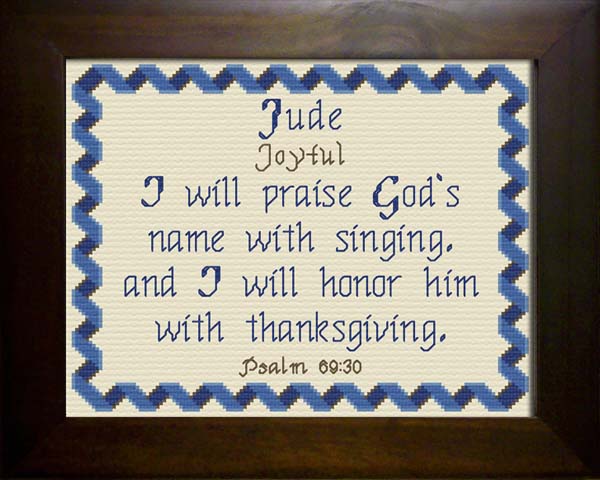 Purchase this Chart for $8.00 or Order Jude as a Complete Kit for $17.00 with 14 ct Aida or $22.00 with 28 ct Linen