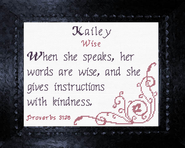 Purchase this Chart for $8.00 or Order Kailey as a Complete Kit for $17.00 with 14 ct Aida or $22.00 with 28 ct Linen