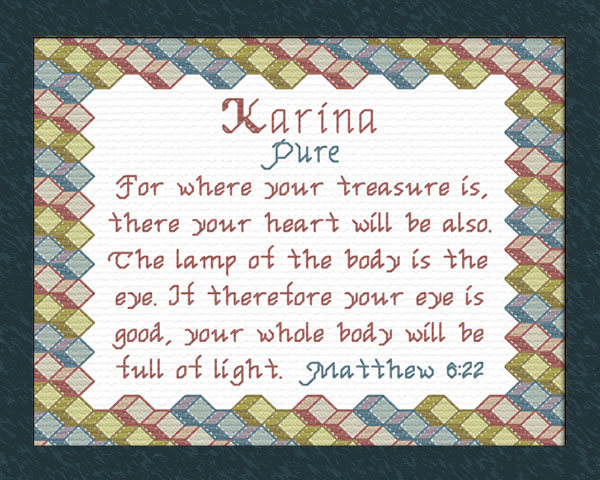 or Order Karina as a Complete Kit for $17.00 with 14 ct Aida or $22.00 with 28 ct Linen