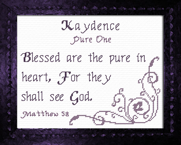 Purchase this Chart for $8.00 or Order Kaydence as a Complete Kit for $17.00 with 14 ct Aida or $22.00 with 28 ct Linen